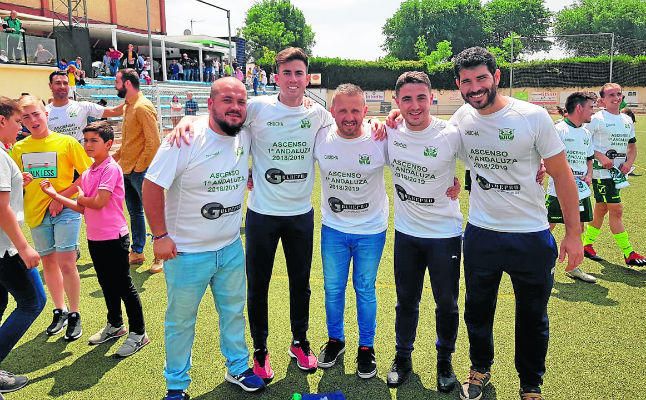 Domingo Caro, con su equipo técnico con el que ha logrado el ascenso a Primera Andaluza.A. F.