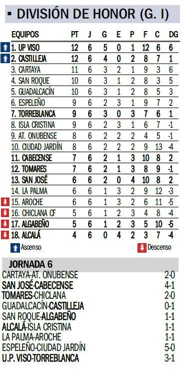 UP Viso y Torreblanca se veían las caras en uno de los duelos más atractivos de la jornada 6. Y así fue. Con un Torreblanca que saltó al césped del San Sebastián con las ideas muy claras de llevar la iniciativa del juego llegó el primer gol. Las ocasiones visitantes se seguían sucediendo, pero la puntería de los hombres de Lara no acababa de estar del todo fina como para matar el encuentro. Tanto perdonar les pasó factura, porque antes del descanso los locales consiguieron empatar a balón parado. Y es que las jugadas de estrategia es uno de los puntos fuertes de esta UP Viso. Así llegó el 2-1 nada más reanudarse el encuentro. Otro córner botado por Luna acababa en el fondo de las mallas. El segundo tanto fue un mazazo para el Torreblanca, que a pesar de seguir metido en el partido, vió como caía el tercero y definitivo.
