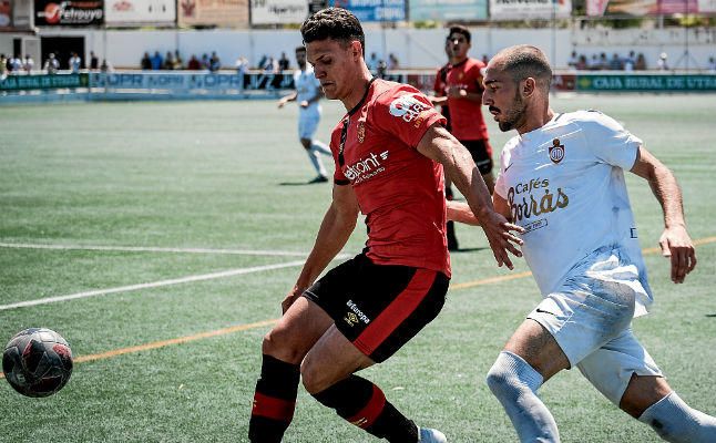 Plusco (derecha), en un lance frente al Mallorca B en la ida de la segunda ronda de los 'play off' del pasado año.Carlos Vizcaíno