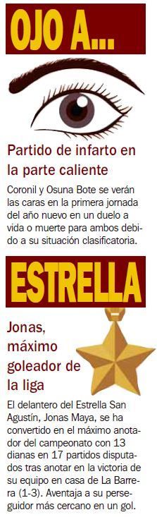 Interesantísima última jornada del año en la Primera Andaluza sevillana, en la que el líder sigue con su buena dinámica a costa de sus rivales. En la zona media, los equipos compiten en una igualdad máxima que hace que ninguno se acabe de despegar hacia arriba o caer en el pozo. Los de abajo, salvo alguna excepción, están cada vez más sumidos en los puestos de descenso.