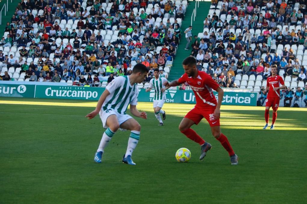 En la recta final del encuentro, estaba por un lado el cuadro sevillista, que con un jugador más sobre el campo, buscaba matar a un Córdoba CF que alentado por su afición, buscaba culminar la remontada y ponerse por delante, insistiendo constantemente, sobre todo por medio de un Incisivo Iván Navarro. El futbolista del filial iba a ser decisivo, después de mandar a la red en semivolea un medido centro desde la banda zurda que a la postre iba a victoria al cuadro blanquiverde, aunque en el añadido, el portero canterano Llamas, que salió tras la expulsión de Becerra, salvó a su equipo tras una gran parada.