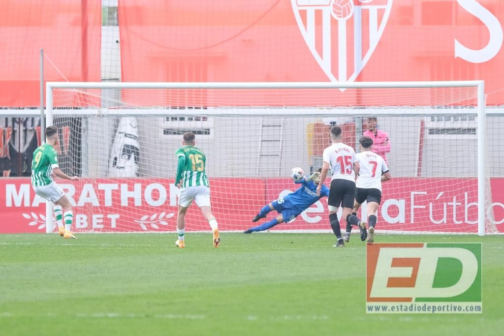 La respuesta bética llegó cuando el reloj se acercaba a la primera media hora, con sendos disparos de David Ramos (25') y Chema Núnez (27'), éste, al recoger un rechace tras la segunda indecisión de Javi Díaz (anteriormente, se comió' un balón alto).