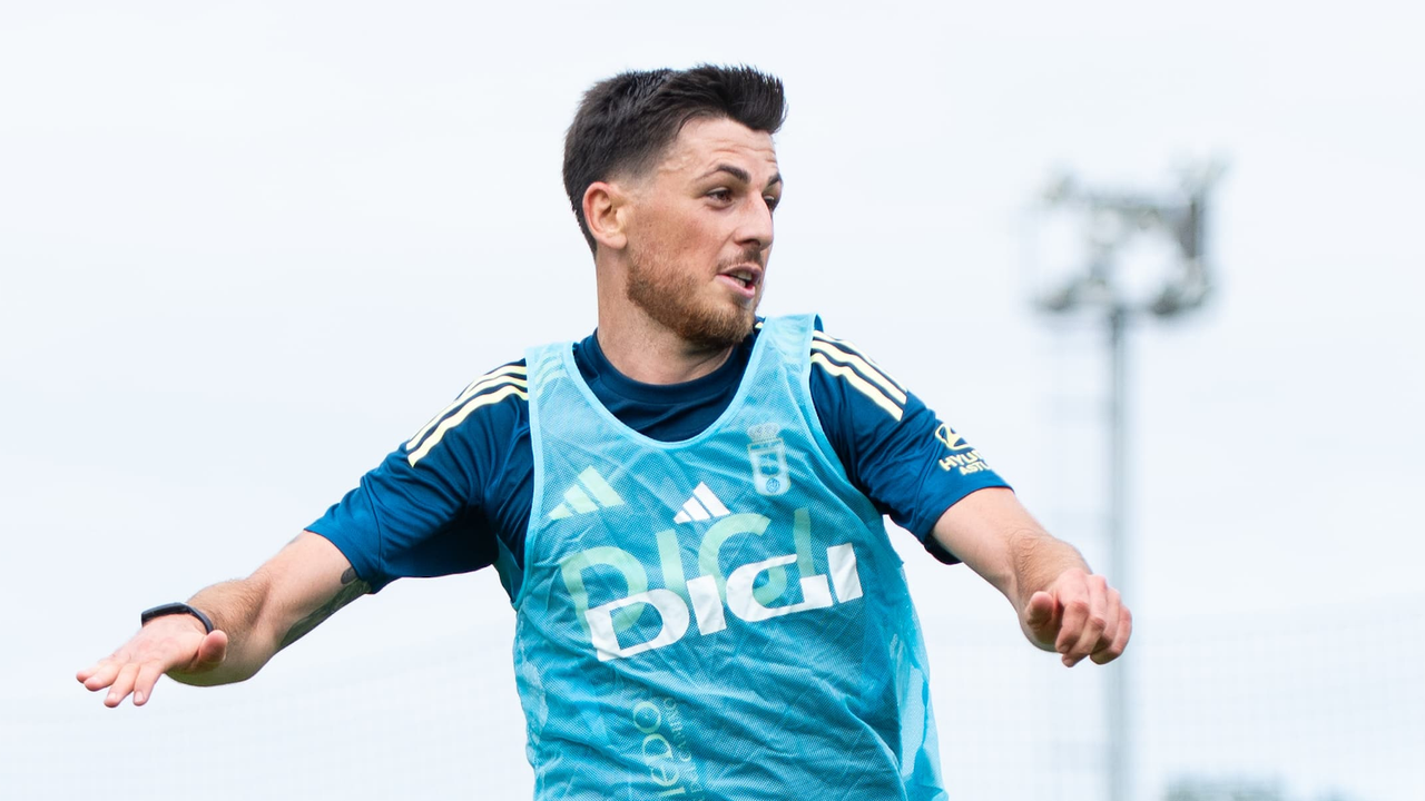 Alberto Reina en un entrenamiento con el Oviedo@RealOviedo