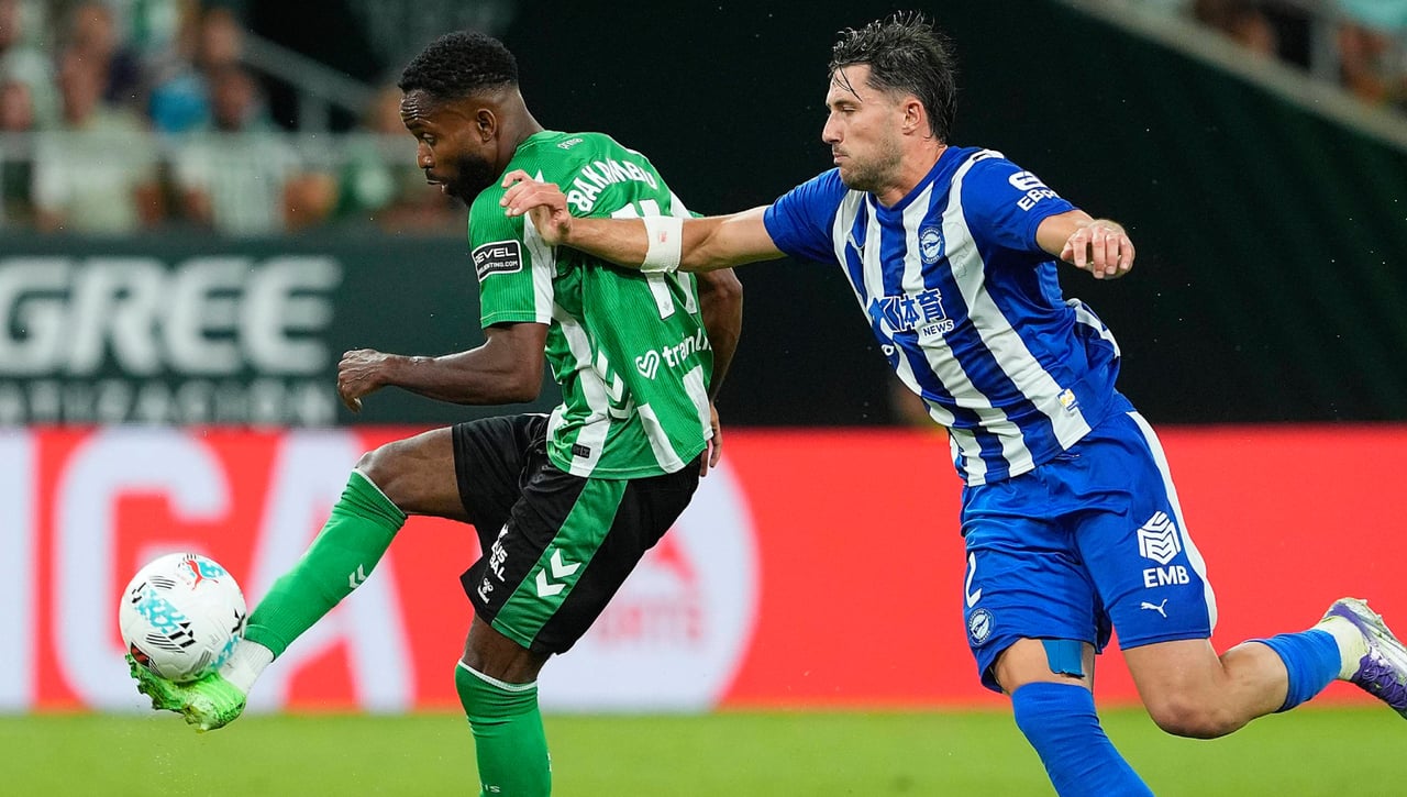 Facundo Garcés pugna con el bético Bakambu en el partido de la primera vuelta disputado contra el Betis.Cordon Press