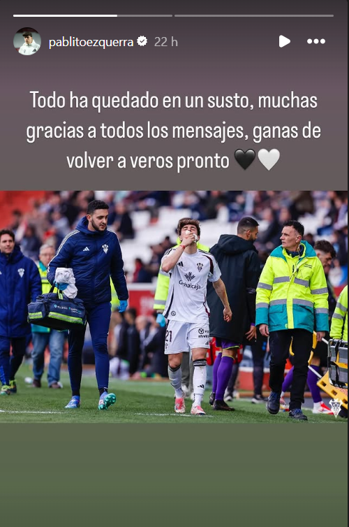 Las asistencias médicas entraron rápidamente al terreno de juego, con la camilla lista para trasladarlo. Sin embargo, a pesar de la aparatosidad del golpe, el futbolista pudo abandonar el campo por su propio pie. Poco después, se confirmó que sufría una conmoción cerebral y fue trasladado al Hospital Universitario de Albacete, donde quedó en observación siguiendo el protocolo habitual en estos casos.