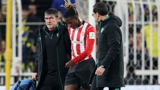 El Athletic Club salió de Estambul con tres puntos bajo el brazo, con la plaza de octavos de final de la Europa League y con una gran preocupación con el estado físico de Nico Williams. El futbolista recibió un fortuito, pero duro, golpe en la rodilla que lo dejó en el dique seco. El extremo internacional español tuvo que ser sustituido y se retiró del campo cojeando y entre lágrimas. Su hermano, Iñaki Williams, confesó que se había asustado al ver que Nico se había llevado la mano a la rodilla, pero asegura que fue del golpe. La realidad es que el futbolista tiene la rodilla muy inflamada y el parte médico asegura que fue de la contusión del choque. Pero la lesión del futbolista podría ser más grave de lo que parece. En el Athletic Club están pendiente de los ligamentos de Nico Williams que podrían estar dañado tras el golpe. De este modo, el club permanece en vilo hasta que le realicen otra prueba médica dónde se pueda saber con exactitud el alcance de la lesión.