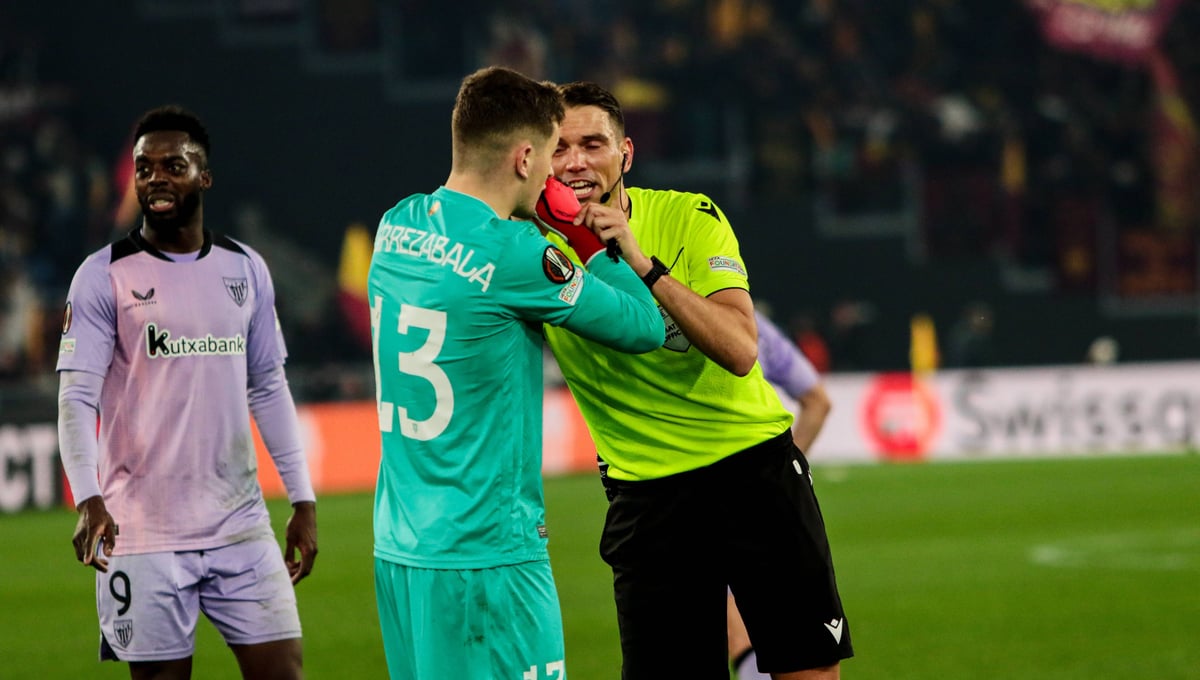 Agirrezabala junto al arbitro e IñakiCORDON PRESS