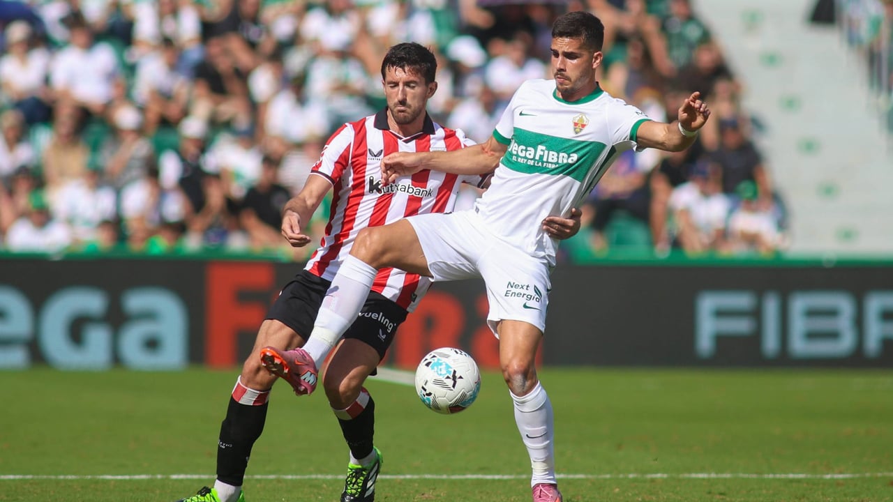 El central del Athletic Club protagonizó la jugada más polémica del choque frente al Elche y pudo acabar expulsado por mano pero el colegiado acabó decretando falta previa de André Silva