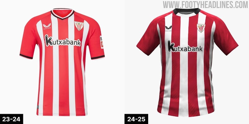 En las últimas horas, se ha dado a conocer un nuevo detalle sobre el plan de los de San Mamés para la 24/25: su primera equipación. Como suele ser habitual, el encargado de desvelarla ha sido el portal especializado Footyheadlines.com. En las imágenes que ha desvelado, se puede apreciar cómo la raya roja de la camiseta es ligeramente más ancha que la blanca. No solo eso, ya que se debe tener en cuenta que esta gama cromática es algo más oscura que la de la temporada que está por finalizar. Esta sería una de las principales innovaciones del Athletic para el curso que viene.