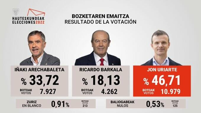 La elección de Jon Uriarte como presidente del Athletic fue un proceso lleno de obstáculos y sorpresas. A pesar de que la campaña electoral estuvo marcada por la controversia, incluida la retirada de Carlos Aviña como posible director deportivo debido a comentarios inapropiados en redes sociales, Uriarte y su grupo de trabajo, Izan Athletic, lograron una contundente victoria. El empresario vizcaíno ganó en todas las mesas con un total de 10.979 votos (46,78%), superando a sus rivales, Iñaki Arechabaleta (7.927 votos) y Ricardo Barkala (4.262 votos).
