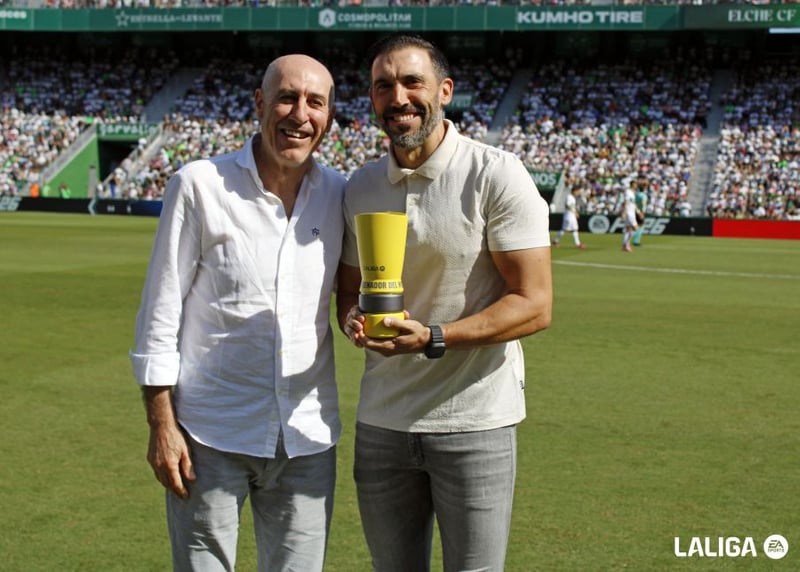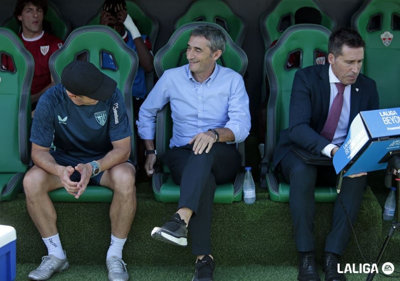 Por su parte, Ernesto Valverde también ha recordado la figura del padre de Eder, Manu Sarabia, con el que no llegó a coincidir en el equipo bilbaíno pero sí como rivales. "He jugado contra él, no me tocaba marcarle porque yo también era delantero. Viendo cómo juega el Elche, siempre se ven similitudes", ha admitido el 'Txingurri' ante Eder Sarabia, que antes del partido ha recibido el galardón de 'Mejor Entrenador de Septiembre' que otorga LaLiga precisamente de manos de su padre, Manu Sarabia.