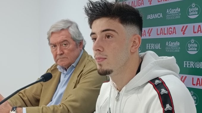 Nico Serrano, en su presentación con el Racing de Ferrol. @racingferrolsad