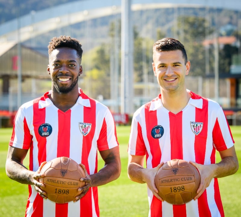 Iñaki Williams y Guruzeta con la nueva camiseta retro Página web del Athletic Club