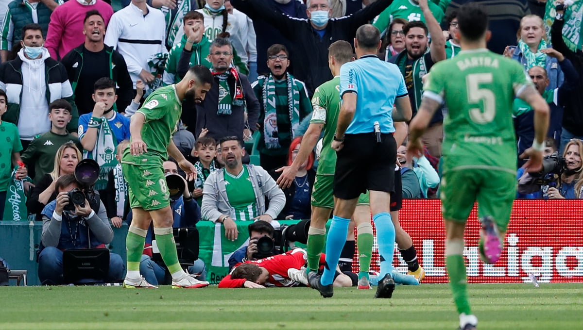 El duelo entre ambos, que estaba siendo sensacional en cuanto a juego, se vio empañado en el minuto 80 del encuentro, que disputaron Real Betis y Athletic Club en la temporada pasada en el estadio Benito Villamarín, cuando Fekir fue expulsado tras una jugada que transcurrió de la siguiente manera. El francés hizo acrobacias con el balón pegado a la banda y se llevó una durísima patada del lateral derecho rojiblanco Óscar de Marcos. Ya en el suelo, reaccionó con una patada a Iker Muniain cuando éste le tocó la cara. Eso propició que Mateu Lahoz, árbitro de aquella contienda, le sacara la tarjeta roja a Nabil Fekir.