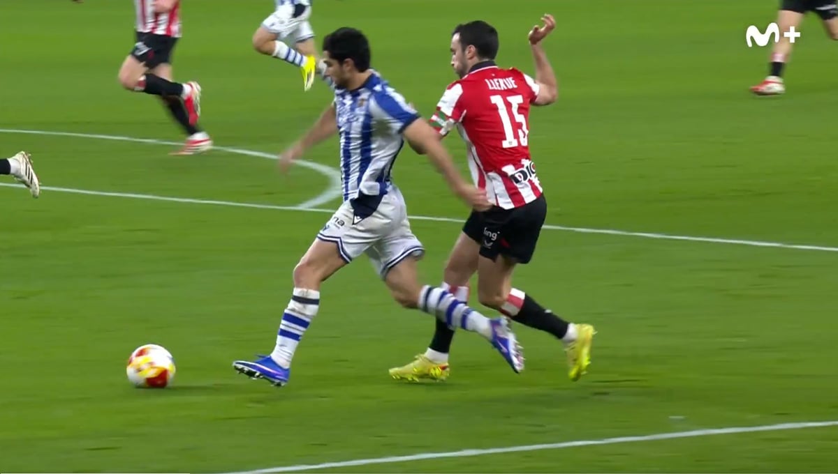 El primer asalto de las semifinales de la Copa del Rey entre Athletic y Real Sociedad se resolvió con una victoria por la mínima para los donostiarras gracias al tanto de Beñat Turrientes en la segunda mitad. Pero en el bando txuri urdin se fueron de San Mamés con la sensación de que podían haber dejado encarrilada la eliminatoria, Y no solo por las ocasiones falladas, en las que tuvo mucho que ver la destacada actuación de Álex Padilla. También hubo dos acciones polémicas en el área rojiblanca y la mayoría de los expertos arbitrales coinciden en que Sánchez Martínez no estuvo acertado a ninguna de ellas.