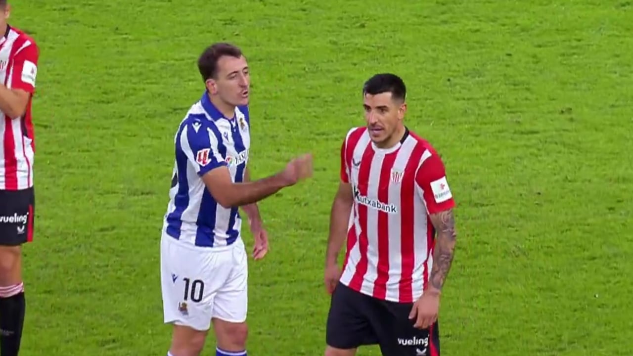 Los futbolistas del Athletic y Real Sociedad tuvieron un acalorado intercambio de palabras por culpa de una jugada en el derbi vasco disputado el pasado fin de semana que fue captado por las cámaras de Movistar+