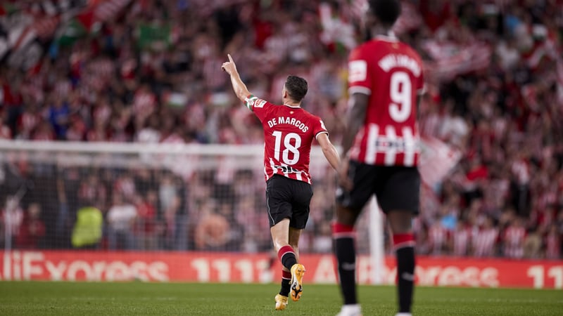 Gran actuación es la que selló este pasado domingo ante el Valencia CF. Marcó su primer gol de la temporada pasada la media hora a centro de Nico Williams. Un tanto que sirvió a la postre a amarrar un punto ante el combativo equipo de Rubén Baraja. Pero al margen de la diana lograda, De Marcos acumula tres asistencias ante Cádiz, Getafe y Almería. Es el dueño de la banda y hasta la fecha es el uno de los futbolistas que más minutos lleva acumulados en el equipo.