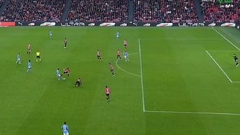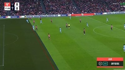 Muy pronto, en el minuto 16, llegó la primera acción protestada por los vigueses. Iago Aspas avisaba y batía a Unai Simón, si bien las líneas del VAR se encargaban de demostrar que Larsen estaba más adelantado en el inicio de la jugada. A la segunda, diez minutos después, el de Moaña sí partió por poco en posición legal y su gol subió al marcador, aunque el Athletic se quejó tímidamente de una falta del atacante en la pugna con Paredes.