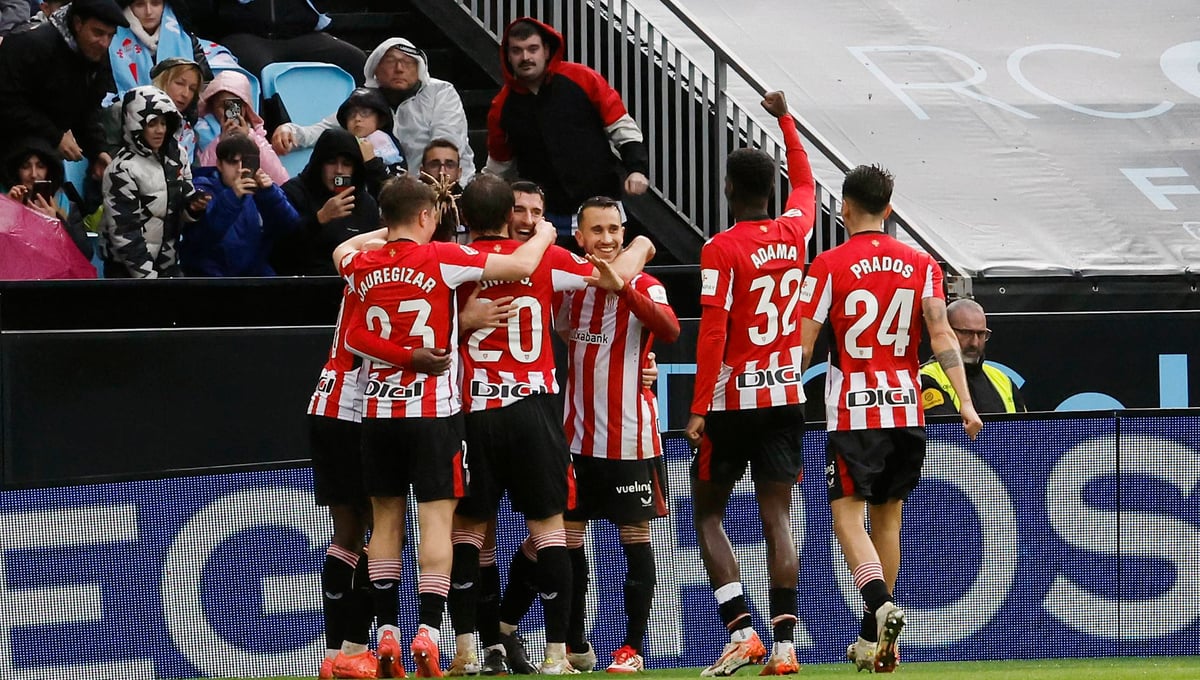 El Athletic Club celebrando uno de los goles en Balaídos.Cordon Press