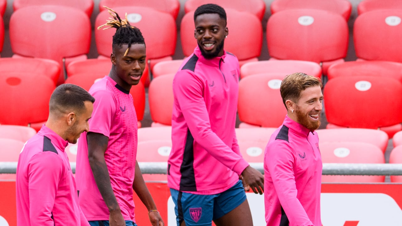 Álex Berenguer, Nico Williams, Iñaki Williams e Iker Muniain, en la última sesión de los vizcaínos antes de recibir a los heliopolitanos.ATH
