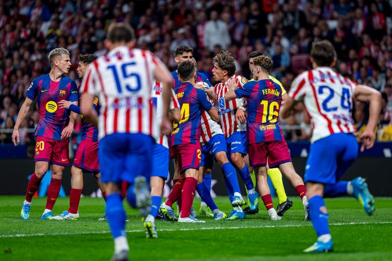 El encuentro de Liga ya dejó claro que estaba marcado por la eliminatoria europea. Sobre el césped se vivió un partido de alto voltaje, con constantes disputas, entradas duras y decisiones arbitrales que generaron mucha polémica. Hubo varias acciones discutidas que encendieron a jugadores y entrenadores, contribuyendo a un ambiente cargado de nerviosismo. La tensión fue creciendo con el paso de los minutos e incluso llegó a desembocar en una gran trifulca entre futbolistas de ambos equipos justo antes del descanso, reflejo de lo mucho que había en juego incluso tratándose de un partido liguero que poco o nada importaba al Atlético a efectos clasificatorios.