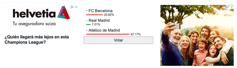 De hecho, más del 67% de los votos de la encuesta dan como favoritos al Atleti a pesar de la dificultad que le depara el cuadro de la UEFA Champions League. Le sigue el FC Barcelona con un 26% aproximadamente y con un 7% al Real Madrid. Sorprenden estos datos, pero hay algo que ha cambiado en el equipo de Simeone y eso parece haber calado notablemente en la afición. Veremos qué le depara a los rojiblancos en las próximas semanas y si los resultados se ven al final de temporada.