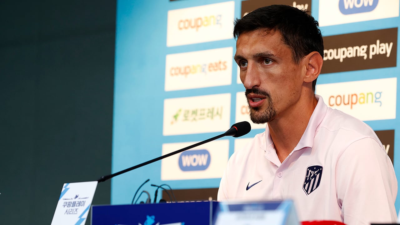 Stefan Savic durante una rueda de prensa del Atlético de Madrid esta pretemporadaATM