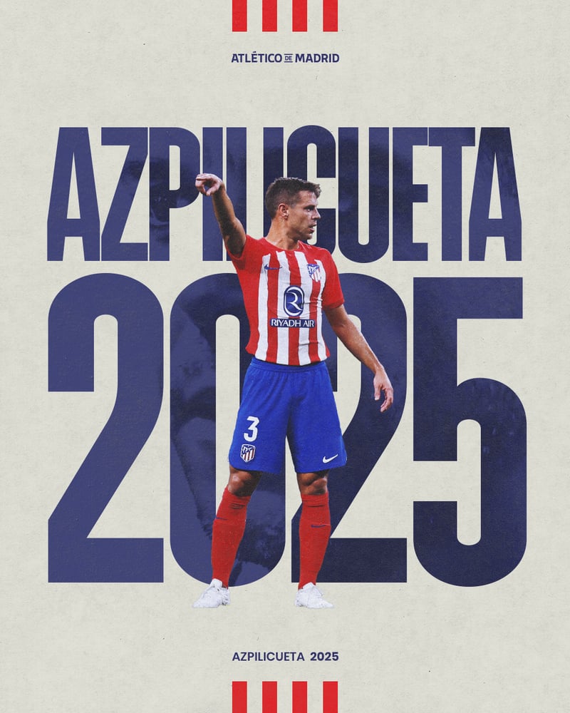 "Acreditando un brillante currículum, Azpilicueta llegó a nuestra entidad el pasado verano procedente del Chelsea FC, donde militó once temporadas y alcanzó la capitanía del equipo. Precisamente, su experiencia y jerarquía enseguida le convirtieron en un pilar fundamental dentro del vestuario rojiblanco, así como en uno de los jugadores más queridos y admirados por nuestra afición, quien seguirá disfrutando de su fútbol una campaña más. ¡Enhorabuena, César!", concluye el escrito del 'Atléti', muy activo durante toda la mañana de este domingo.