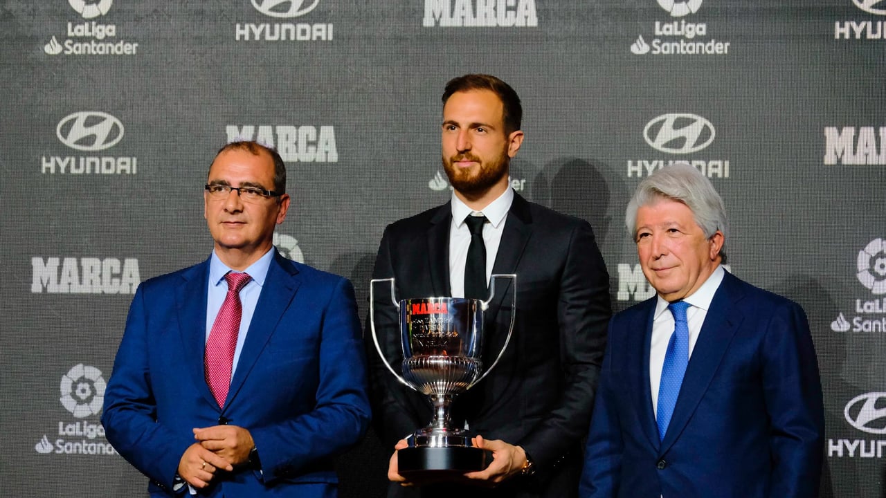 Enrique Cerezo, presidente del Atlético de Madrid, junto a Jan OblakCordon press