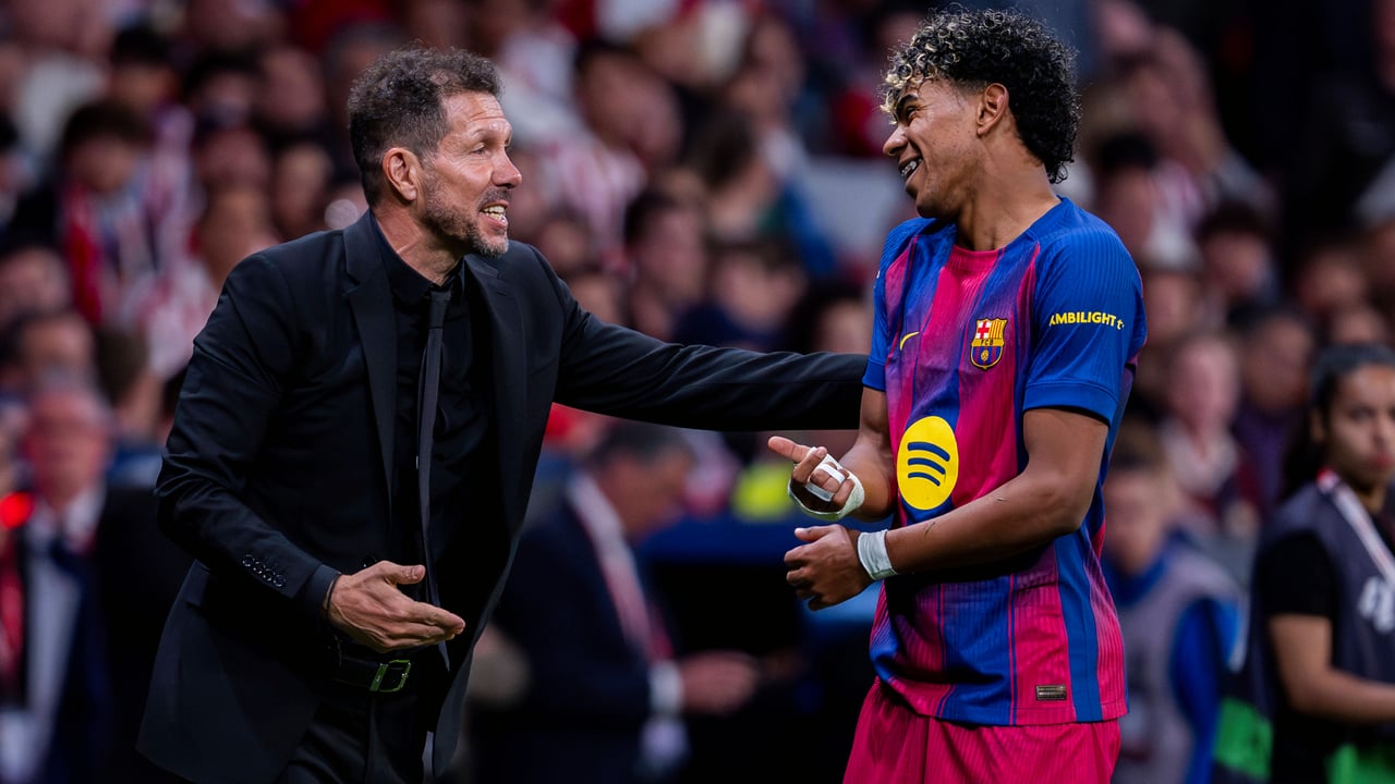 Diego Simeone conversa con Lamine Yamal en su último enfrentamiento. Imago