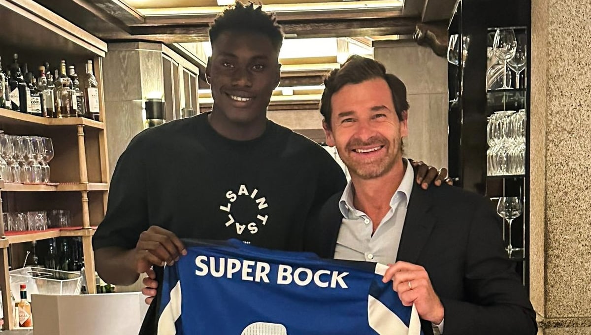 Samu Omorodion posa con su nueva camiseta junto a Vilas-Boas.FC Porto