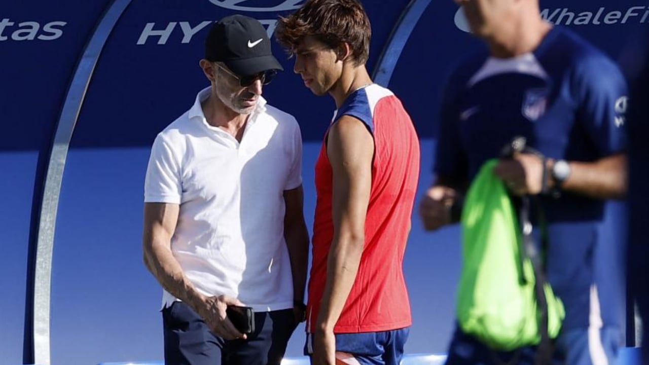 Andrea Berta junto a Joao Félix durante un entrenamiento con el Atlético de MadridUES