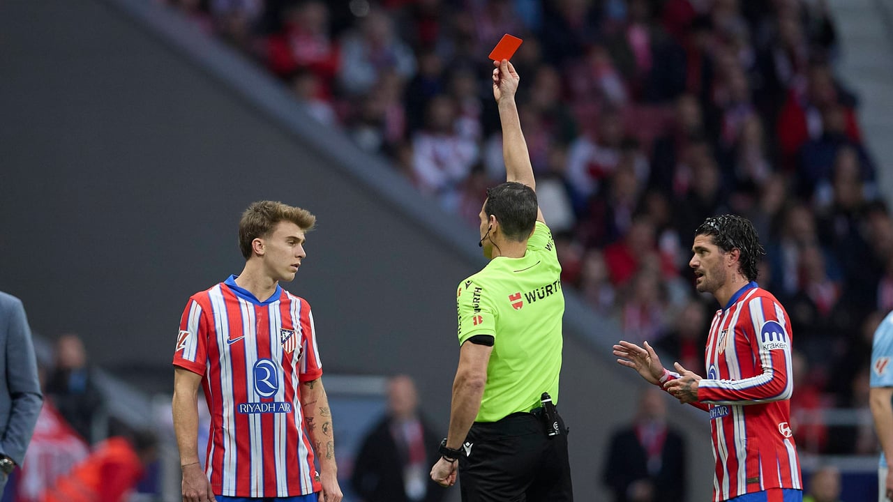 El mediocentro del Atlético de Madrid volvió a ver la cartulina roja directa por una acción muy similar a la que también le costó la expulsión ante el Bayer Leverkusen en la Champions