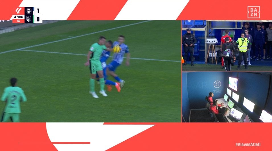 En el penalti de Yuri, el disparo de Baena, que iba para afuera, impacta en el brazo extendido del defensa rojiblanco a la altura de la axila, motivo por el cual Hernández Maeso avisa desde el VAR a Cuadra Fernández para que vea la jugada en el monitor. Ayer, en Mendizorroza, avisaron a Gil Manzano para justo lo contrario. Cabe recordar que Atlético y Athletic están librando una auténtica batalla por la última plaza de la Champions, ambos están a tres puntos de distancia y se ven las caras este sábado.