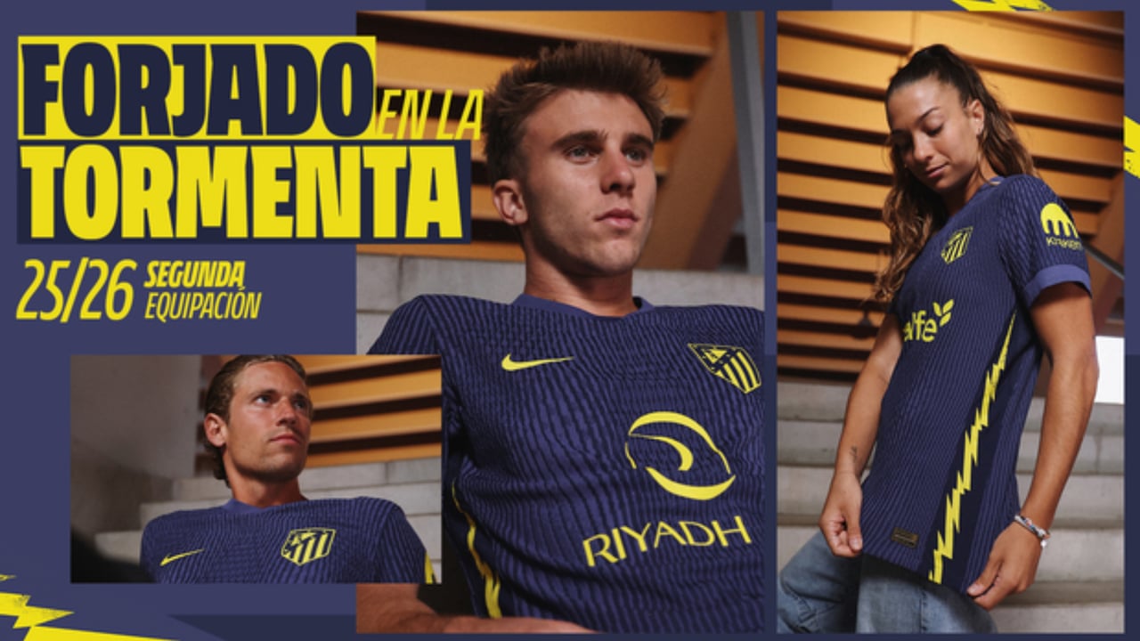Con un novedoso diseño en azul marino, la camiseta incorpora unos rayos en tono amarillo fluorescente en los costados, al igual que el escudo monocromo. "De predominante tonalidad en azul marino, su diseño incorpora además unos impactantes rayos en sus dorsales, cuyo vibrante color amarillo -presente en otros detalles como el escudo monocromo, el 'Swoosh' de Nike y los patrocinadores- le otorga un toque eléctrico y distintivo. La inspiración llega directamente de nuestra banda sonora en los momentos previos a cada partido disputado en el Riyadh Air Metropolitano: Thunderstruck de AC/DC, porque hay canciones que no solo se escuchan sino que se sienten", explica la web de Atlético de Madrid en su nota.