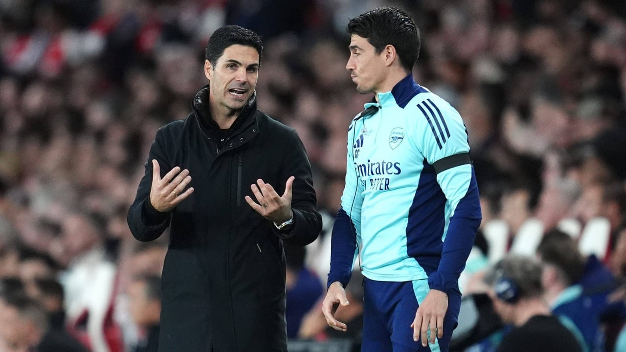 Mikel Arteta dialoga con Carlos Cuesta. CORDON PRESS