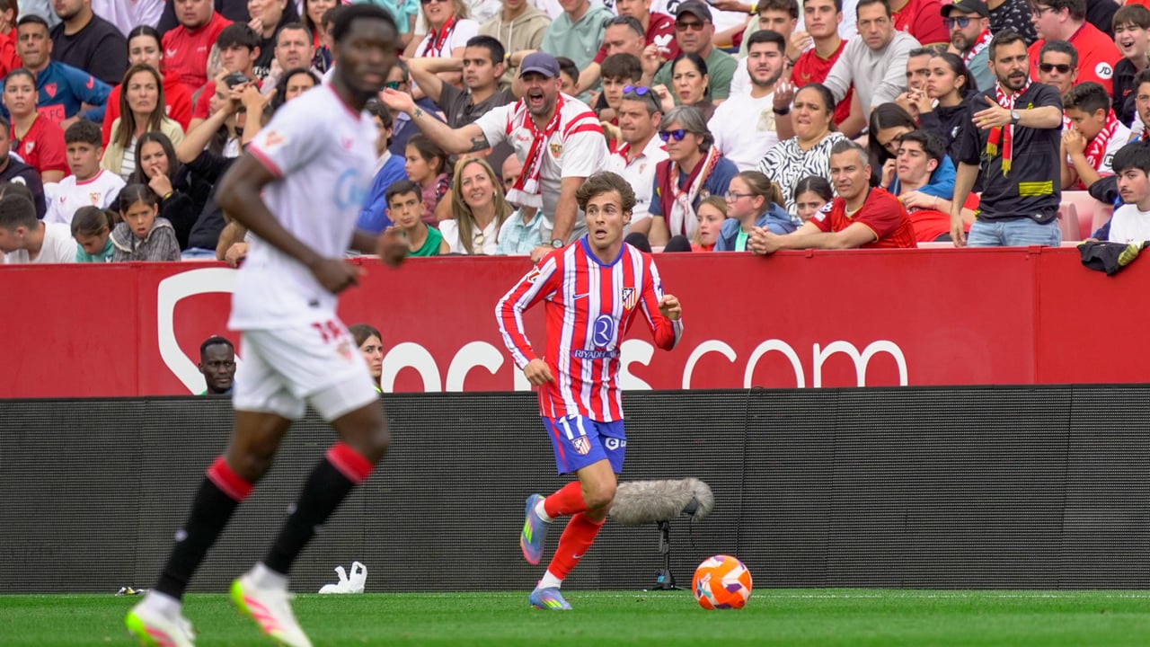 Rodrigo Riquelme fue uno de los jugadores que más sorprendió en la victoria del Atlético de Madrid en el Ramón Sánchez-Pizjuán ante el Sevilla de la última jornada. El canterano había desaparecido del once en esta temporada, pero poco a poco se va ganando un hueco en la rotación de Diego Pablo Simeone, que decidió tirar de él para lograr la remontada en el feudo sevillista.