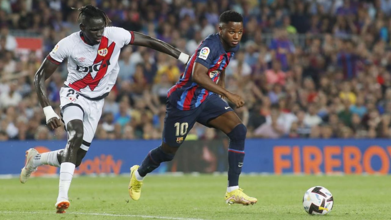 Ansu Fati disputando un balón durante un partido frente al Rayo VallecanoUES