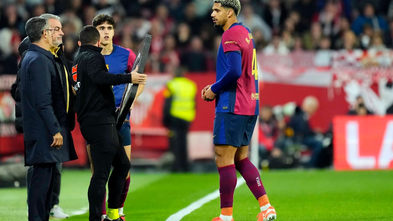El FC Barcelona tiene motivos para estar preocupado en el choque ante el Sevilla. El cuadro dirigido por Hansi Flick, que quiere dar un paso hacia delante relevante en el torneo de la regularidad, ha vivido momentos de lo más intensos en el Ramón Sánchez Pizjuán. No solo han recibido el golpe del empate los culés, sino que han tenido que vivir cómo una de sus piezas clave, Ronald Araújo, ha hecho saltar las alarmas, teniendo que retirarse antes de tiempo del terreno de juego, haciendo temblar al técnico germano, que no se puede permitir perder a más efectivos en una fase crucial de la temporada en LaLiga EA Sports.