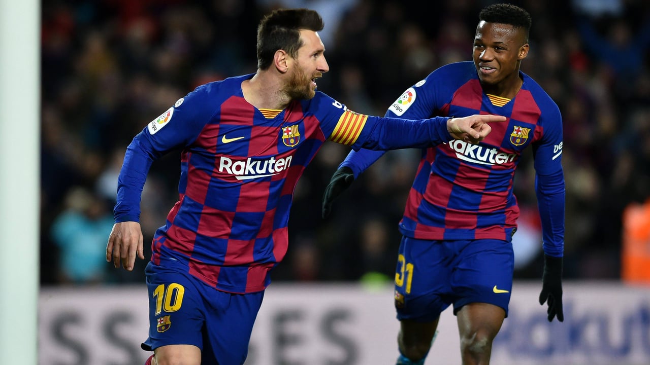 Leo Messi celebrando un gol junto a Ansu Fati con la camiseta del FC BarcelonaCordon Press
