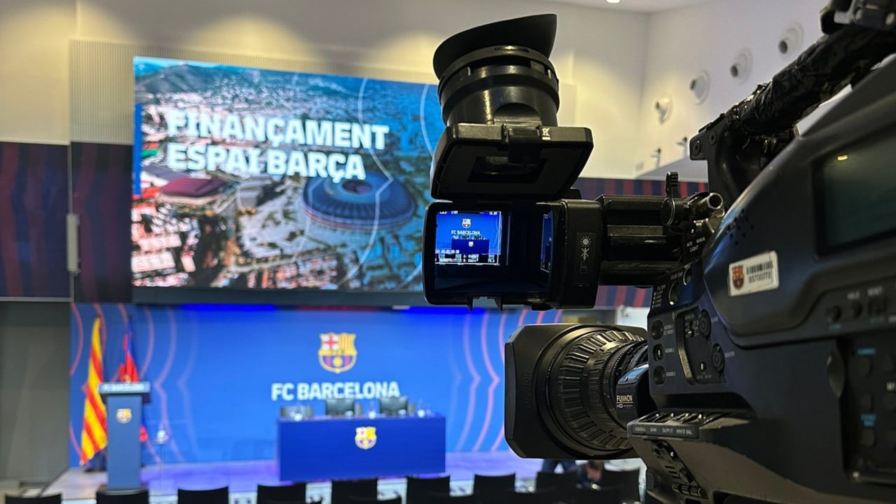 Las cámaras de Barça TV durante el acto de financiación del Espai BarçaTwitter - @FCBtv