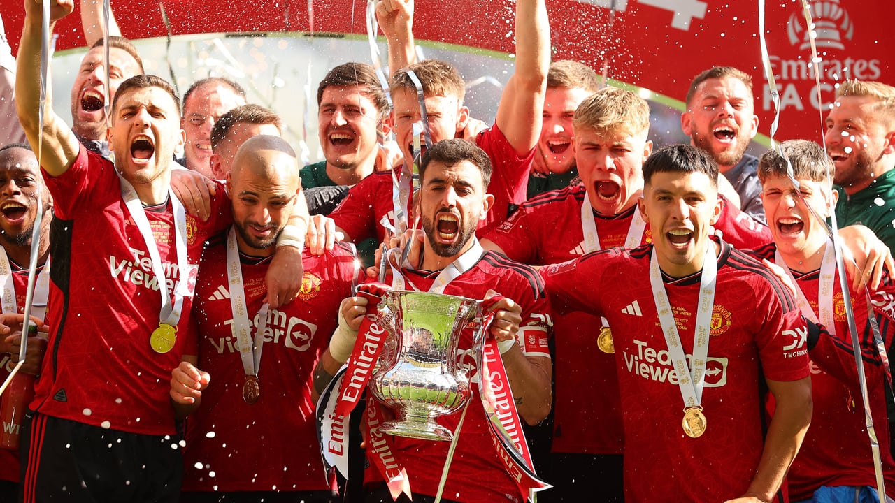 Los jugadores del Manchester United celebran el título de la FA CupCordon press