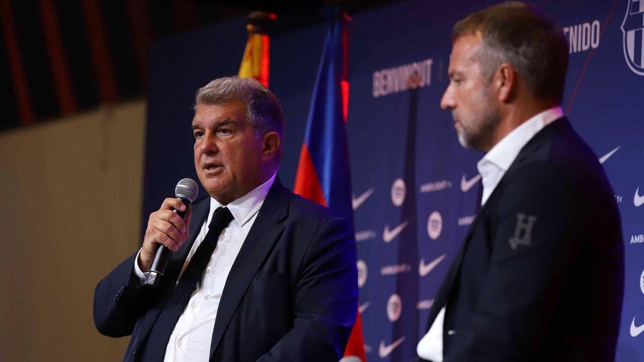 Joan Laporta durante la presentación de Hansi Flick cooentrenador del BarcelonaCordon Press