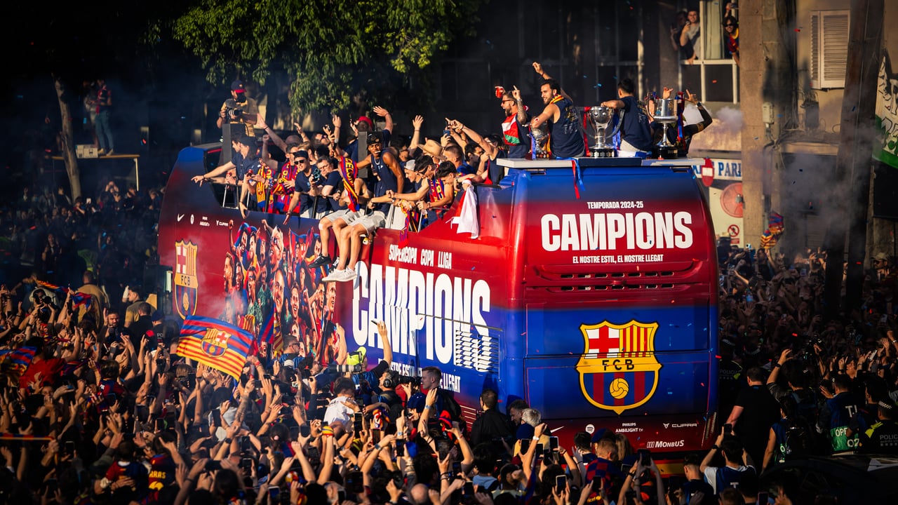 El Fútbol Club Barcelona ha celebrado este viernes por toda la Ciudad Condal el título de LaLiga EA Sports cosechado el pasado jueves en el RCDE Stadium tras vencer por cero a dos al Espanyol. El cuadro culé ha atravesado buena parte de su ciudad en un autobús para celebrar junto a los aficionados blaugranas el premio conseguido a las órdenes de Hansi Flick.