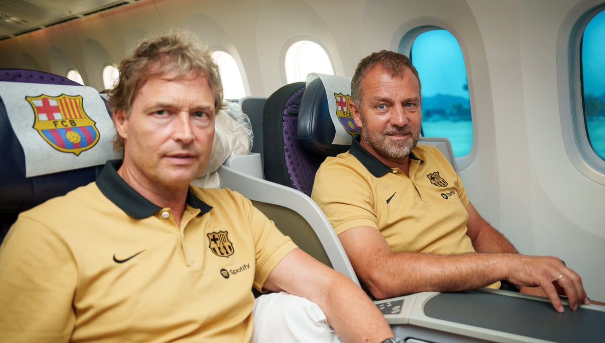 El FC Barcelona de Hansi Flick se estrenó con una victoria por la mínima ante el UE Olot (1-0, gol de Pablo Torre) y en la sobremesa de este domingo ha volado hacia Estados Unidos, donde el técnico alemán aterriza con lo puesto para afrontar un subida de nivel en los test frente al Manchester City, el Real Madrid y el AC Milán. A 29 de julio, sigue sin ninguno de los refuerzos prometidos por Joan Laporta y Deco, que siguen cuadrando cuentas esperando la decisión de Nico Williams antes de decidir otros movimientos, y con las bajas de Marcos Alonso, Sergi Roberto, Joao Cancelo y Joao Félix, a los que se suman una decena de ausencias entre los futbolistas internacionales que se encuentran de vacaciones y los numerosos lesionados de consideración que lamenta el nuevo entrenador.