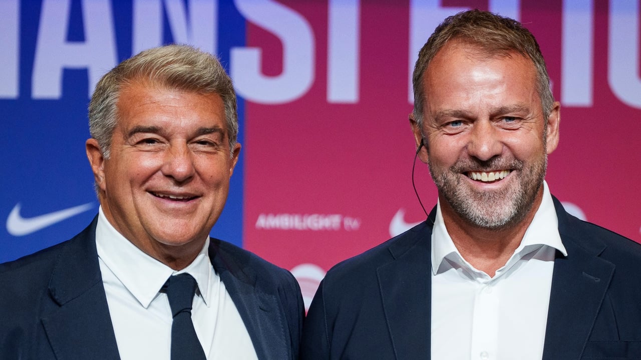 A primera hora de este jueves, en la presentación oficial del nuevo entrenador del FC Barcelona, se han visto dos personalidades totalmente opuestas: Joan Laporta, quien a pesar de mostrarse más comedido y menos eufórico que en anteriores comparecencias ha vuelto a lanzar un órdago en materia de fichajes, y Hansi Flick, un entrenador prágmatico que ve que a tres semanas del inicio de la temporada sigue sin refuerzos y no parece ser alguien que se ilusione con palabras vacías de hechos. Si llegan los refuerzos, bienvenidos, pues admite que hacen falta mejoras en casi todas las líneas; pero se mostró tajante a la hora de rechazar seguir inflando el globo de la ilusión con nombres como los de Nico Williams, Dani Olmo o Mikel Merino. No se ha mostrado incrédulo ni se ha quejado de plantilla, consciente de que eso fue lo que le costó el cargo a Xavi Hernández, pero se negó a hablar de jugadores que no pertenezcan a su equipo. Y si llegan, pues bienvenidos.