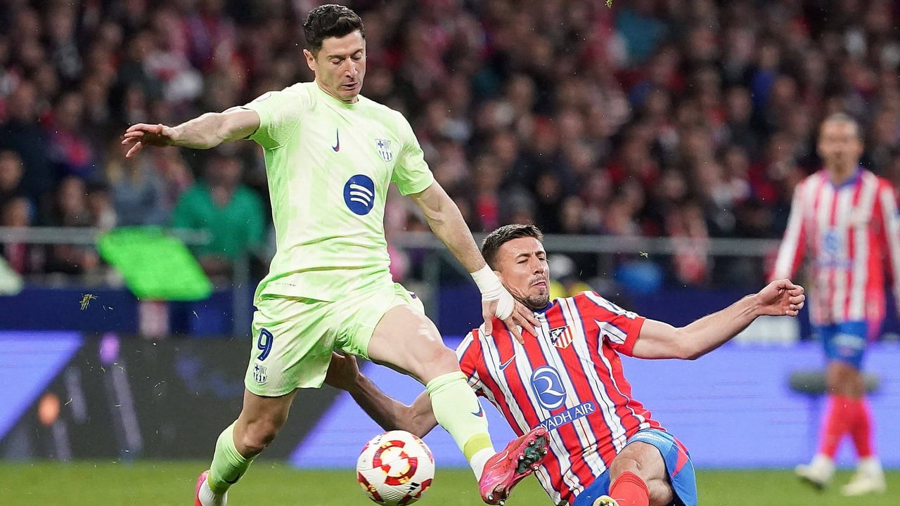 Lewandowski y Lenglet pugnan por un balón.Cordon Press