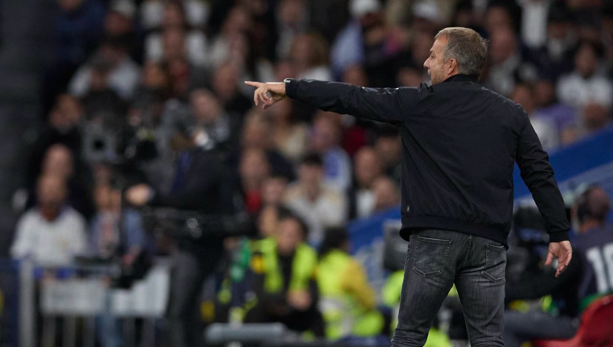 Hansi Flick da instrucciones a su defensa durante El Clásico.Cordon Press