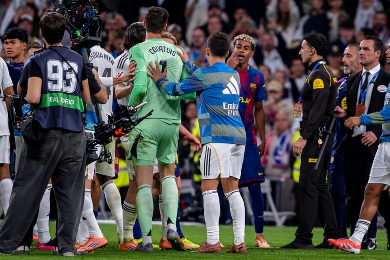 De esta manera, la polémica se hizo viral en muy poco tiempo, por lo que pudo llegar al vestuario de Xabi Alonso, que reflejaron su enfado y disconformidad con Lamine sobre el césped del Santiago Bernabéu. Una tarjeta roja a Pedri fue el comienzo de una tangana en la que tuvo que intervenir la Policía Nacional. Sin embargo, el momento con Lamine como protagonista llegó tras el pitido final de Soto Grado, cuando Courtois, Carvajal y Vinicius le mostraron, con un gesto claro al futbolista de 18 años, su malestar tras sus declaraciones.
