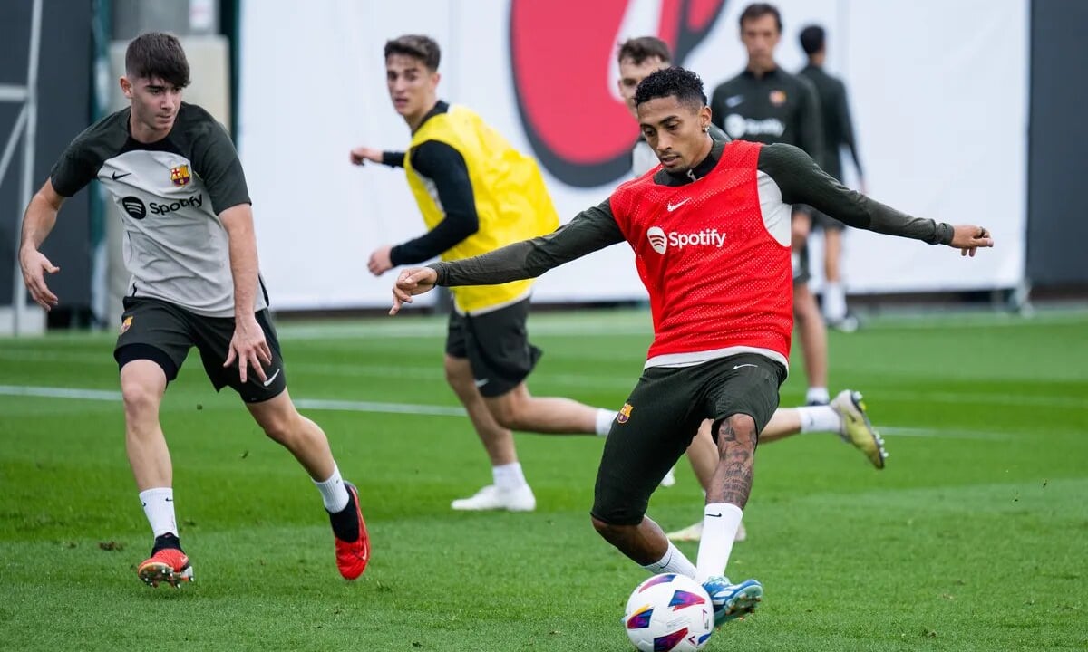Raphinha, durante el entrenamiento del BarçaFC Barcelona